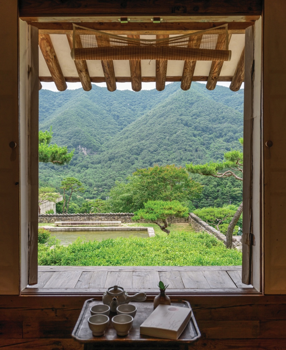 아원은 아무리 잘 찍은 사진보다 직접 눈으로 마주했을 때 훨씬 더 큰 감흥을 불러일으키는 곳이다. 그 진가를 제대로 경험하려면 하룻밤 머물러야 할 것이다. 태백산맥 끝자락에 해당하는 종남산. 전해갑 대표는 주위에 아무것도 없던 이 산속에 30 년 전 처음 터를 잡았다. 20여 년의 준비 기간을 거쳐 일반인에게 개방한 지 이제 5년째인 아원은 갤러리와 고택이 어우러진 복합문화공간이다. 스테이 공간은 250년 된 경남 진주의 고택과 150년 된 전북 전읍의 고택을 이축하고 한옥의 불편함을 보완한 별채를 더해 전통과 현대가 공존하도록 설계했다. 1,600여 평의 대지는 사면이 푸르른 산자락에 둘러싸여 아늑하면서도 시원한 개방감이 느껴지는 것이 특징. 대청마루에 걸터앉아 주변 산세의 기운을 온전히 받고 있자면 이런 땅을 알아본 안목이 궁금해지는데, 전아름 매니저의 말에 답이 있다. “대표님이 정말 힘들어 마음의 바닥까지 내려갔을 때 이 산과 이 땅이 눈에 들어왔다고 말씀하세요. 가진 것이 많고 여유로웠다면 절대 알아보지 못했을 거라고요.” 그래서 아원은 ‘내’가 아닌 ‘우리’의 정원이고, 이 공간의 진짜 주인은 종남산이라는 말은 과장이 아니다.