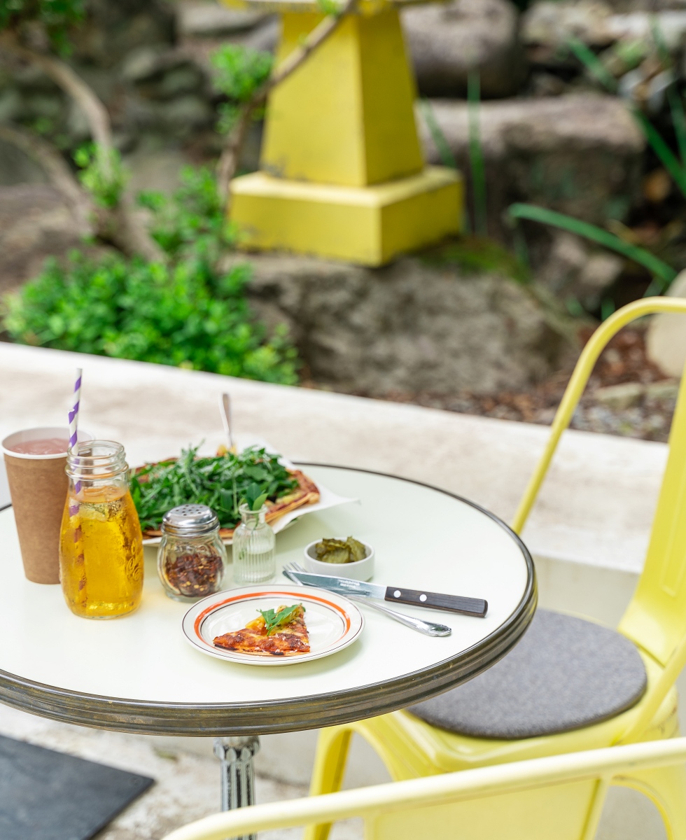 전통의 멋을 간직한 고택 사이에서 이국적인 분위기와 맛을 즐길 수 있는 곳. 한옥마을 내에 있는 식당 기양초 옆 창고를 개조해 문을 열었다. 화이트 톤의 목재와 꽃무늬 벽지, 귀여운 파라솔 아래 놓인 야외 테이블과 파스텔 컬러의 철제 의자가 어우러진 인테리어는 피자 한 조각에 신선한 착즙 주스를 곁들이기에 딱이다. 재료를 아낌없이 넣은 페퍼로니 앤 하와이안 피자가 이곳의 대표 메뉴. 한 지붕 아래 카페와 나란히 있는 라이프스타일 스토어 플러스82프로젝트도 그냥 지나치지 말자. 라이플페이퍼(Rifle Paper Co.)의 제품을 포함해 각종 문구와 소품을 판매하는데, 구경하는 것만으로도 기분이 좋아질 만한 공간이다.