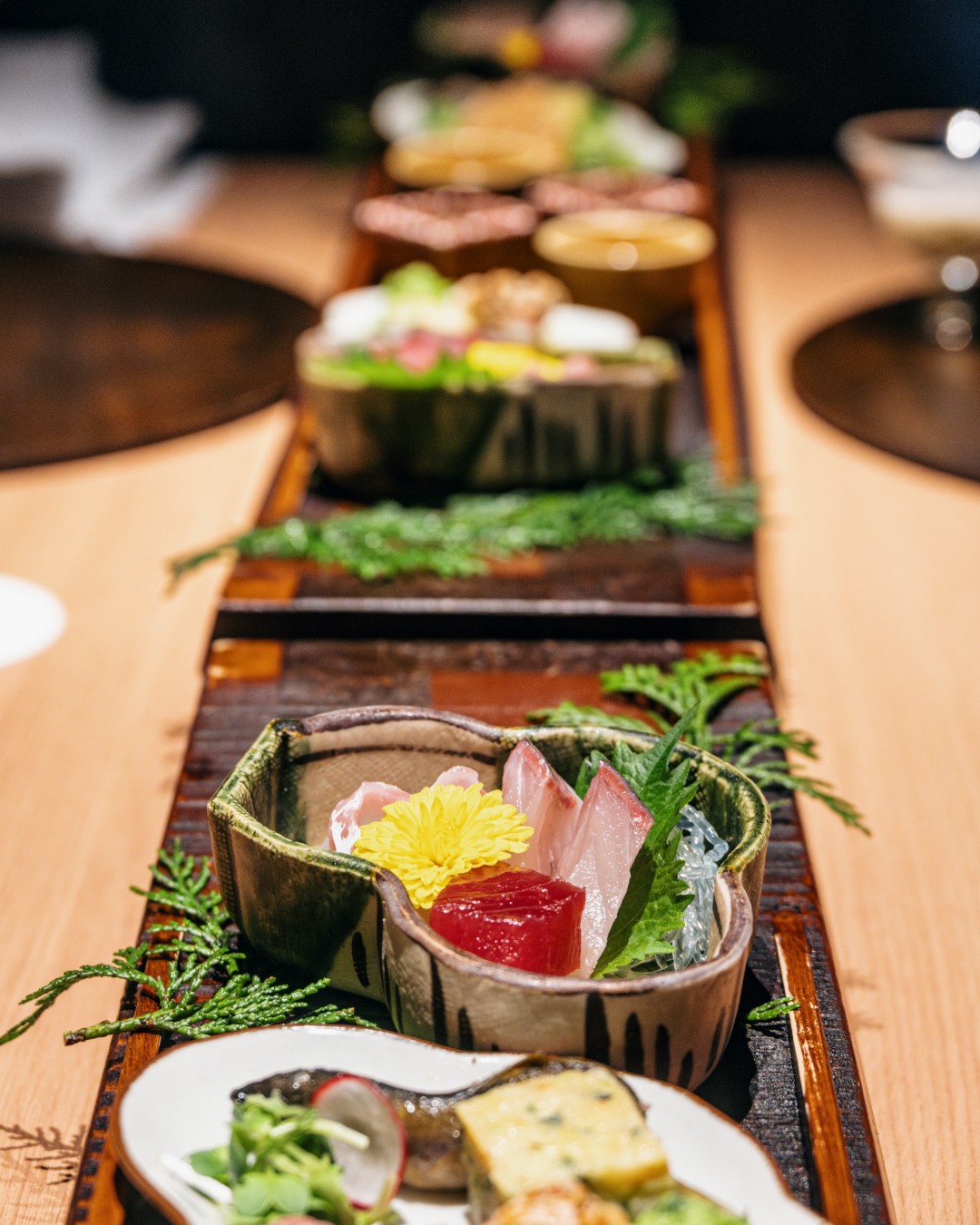 온천 마을의 관문이자, 가장 규모가 큰 히라유에 들어서면 호시노 리조트 카이 오쿠히다(Hoshino Resorts KAI Okuhida)가 반긴다. 작년 가을 새로 문을 연 따끈따끈한 료칸이다. 기후현에선 최초로 선보이는 호시노 리조트의 카이 브랜드 료칸은 오늘날 기후현 북부에 해당하는 히다 지역의 전통과 장인 정신을 잇는 전통 히다식 숙소를 콘셉트로 한다. 주변 자연환경에 자연스럽게 녹아들도록 설계한 건물부터 현지 목재로 제작한 마게키(曲木, 나무에 증기를 가해 곡선 형태로 만드는 기술로, 100년 전 독일에서 전파돼 히다 지역의 목공예 전통으로 자리 잡았다) 가구와 공예품으로 꾸민 실내 인테리어, 히다규를 비롯한 지역 특산물과 제철 식자재로 계절마다 새롭게 구성하는 가이세키 코스 요리와 히다 공예 체험까지, 머무는 동안 경험하는 모든 것이 세심하게 이 지역의 문화와 연결돼 있다. 객실동, 대욕장, 라운지가 들어선 건물과 건물 사이에는 돌과 나무 등 자연 재료를 활용한 야트막한 울타리를 쌓고 오솔길과 안뜰을 조성해 마을 안 또 하나의 작은 마을 같은 아늑한 분위기를 풍긴다.