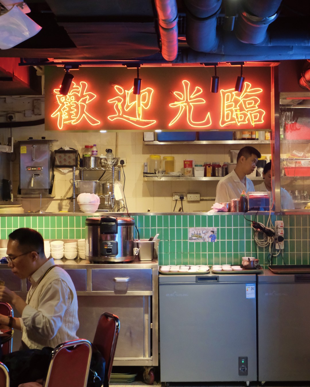 우리나라에서 레트로 열풍을 타고 실내 포차나 야장이 인기라면, 홍콩의 MZ 세대는 다이파이동(大牌档, 19세기 후반 등장한 야외 포장마차. 한때는 도시 내 수십여 개에 이르렀으나 현재는 거의 사라지고 소수만 남았다.)에 열광한다. 거리 혼잡과 위생 문제로 사라져간 홍콩의 옛 감성을 되살리기 위해 최근 몇 년 사이 새로운 트렌드로 자리 잡은 것이 바로 실내 다이파이동. 몽콕의 레이디스 마켓 인근에 자리한 레이디스 스트리트 식판 컴퍼니도 그중 하나다. 붉은 조명과 네온사인과 복고풍 간판, 빈티지 소품으로 꾸민 내부는 평일 저녁에도 빈자리 없이 가득 들어차 왁자지껄하다. 퇴근한 직장인부터 친구, 가족 단위까지, 술 한잔 곁들이며 저녁 식사를 하는 현지인들이 대부분이다. 전통 다이파동과 마찬가지로, 불 향과 감칠맛이 가득한 광둥식 요리가 주를 이룬다. 블랙 트러플 새우 멘보샤부터 호주산 바닷가재 볶음, 파인애플 탕수육, 볶음밥까지, 하나같이 술 안주로도 손색없어 시원한 맥주를 곁들이지 않고는 못 배길 것이다. 회전 테이블이라 다양한 메뉴를 주문해 여럿이 나눠 먹기에 좋다